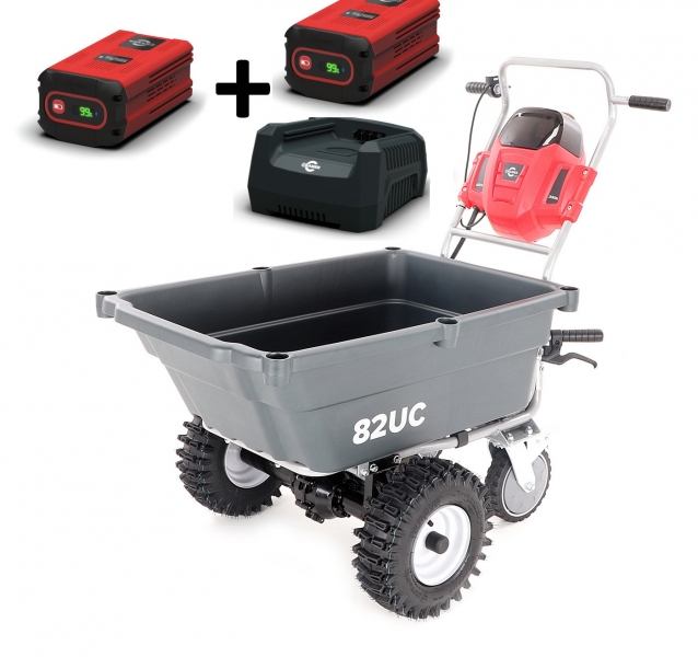 Pokud potřebujete přepravovat těžké nebo objemné předměty, jednoduše použijte extrémně stabilní bateriový motorový vozík Cramer 82V. Díky čtyřem kolům je velmi robustní a poskytuje úlevu pro vaše paže a záda, zejména na svazích a plošinách. Pro větší pohodlí a snadnou manipulaci lze návěs naklápět pomocí plynové tlakové pružiny. Díky bezkomutátorovému elektromotoru přepraví bateriový užitkový vozík vše bez hluku a emisí.