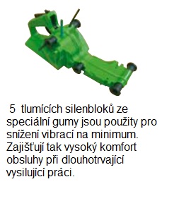 Tři až pět speciálních gumových tlumičů je použito k redukování vibrací na minimum. Pro obsluhu je zaručen maximální komfort.