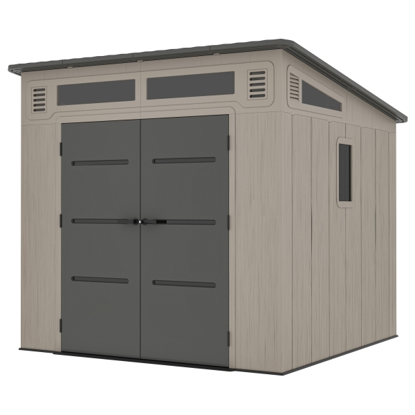 Tento moderní zahradní domek nabízí ideální kombinaci odolnosti, funkčnosti a elegantního vzhledu. Je vyroben z bezúdržbových dvouvrstvých HDPE panelů, které výborně odolávají povětrnostním vlivům a nevyžadují žádné speciální ošetřování. Tloušťka stěn 22 mm a zesílená střecha o tloušťce 36 mm zajišťují vysokou pevnost a dlouhou životnost celé konstrukce.
